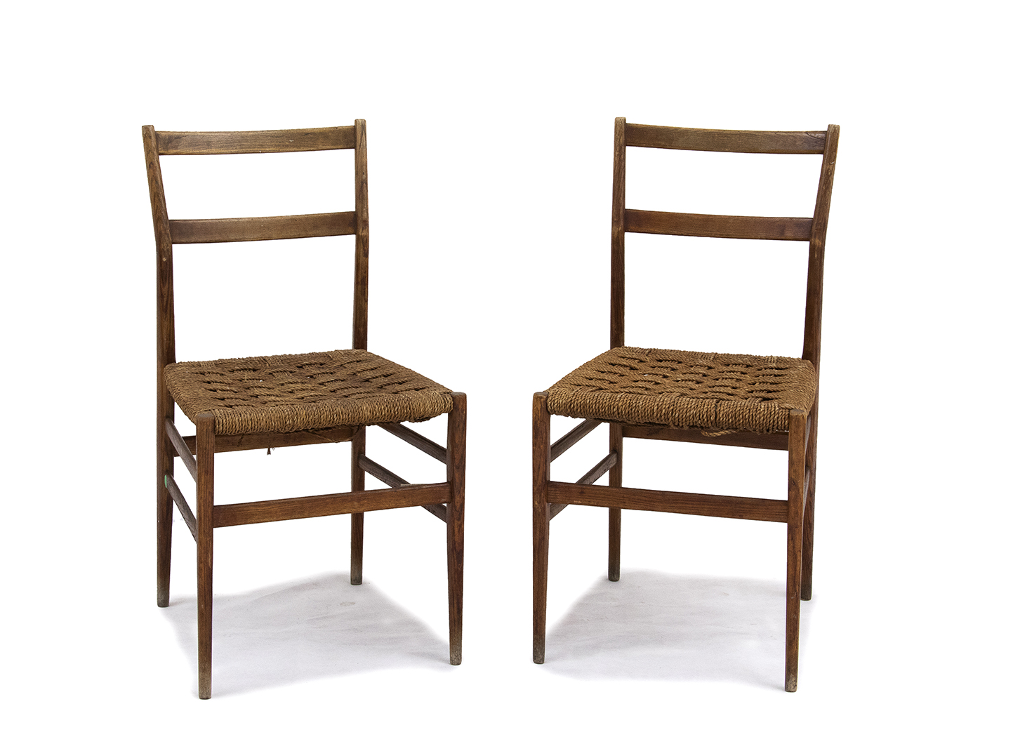 GIÒ PONTI Due sedie, serie “Leggerissime” Legno e paglia, 83 x 40 x 40 cm