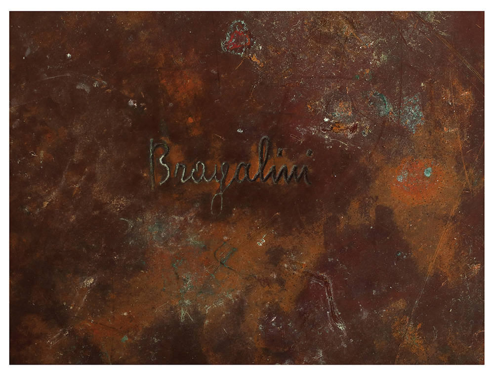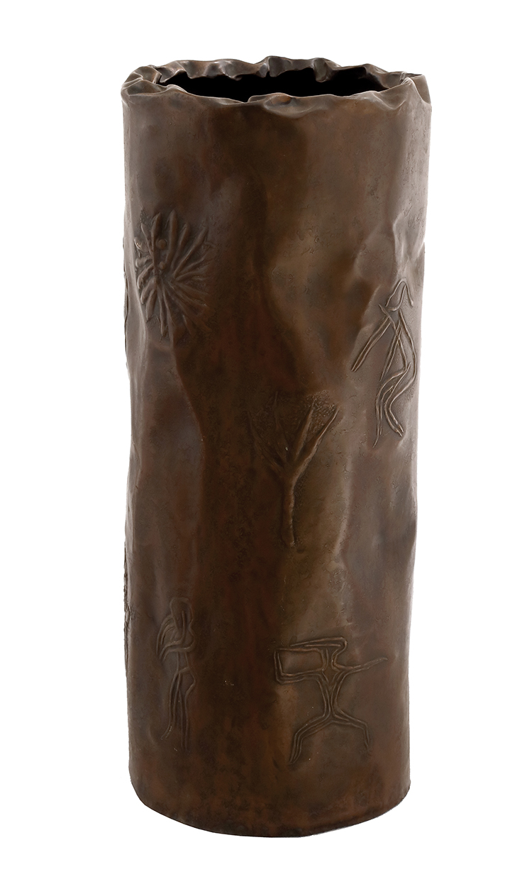ANGELO BRAGALINI Vaso con figure stilizzate sbalzate Rame, h. 54 cm Firma incisa sotto la base: Bragalini