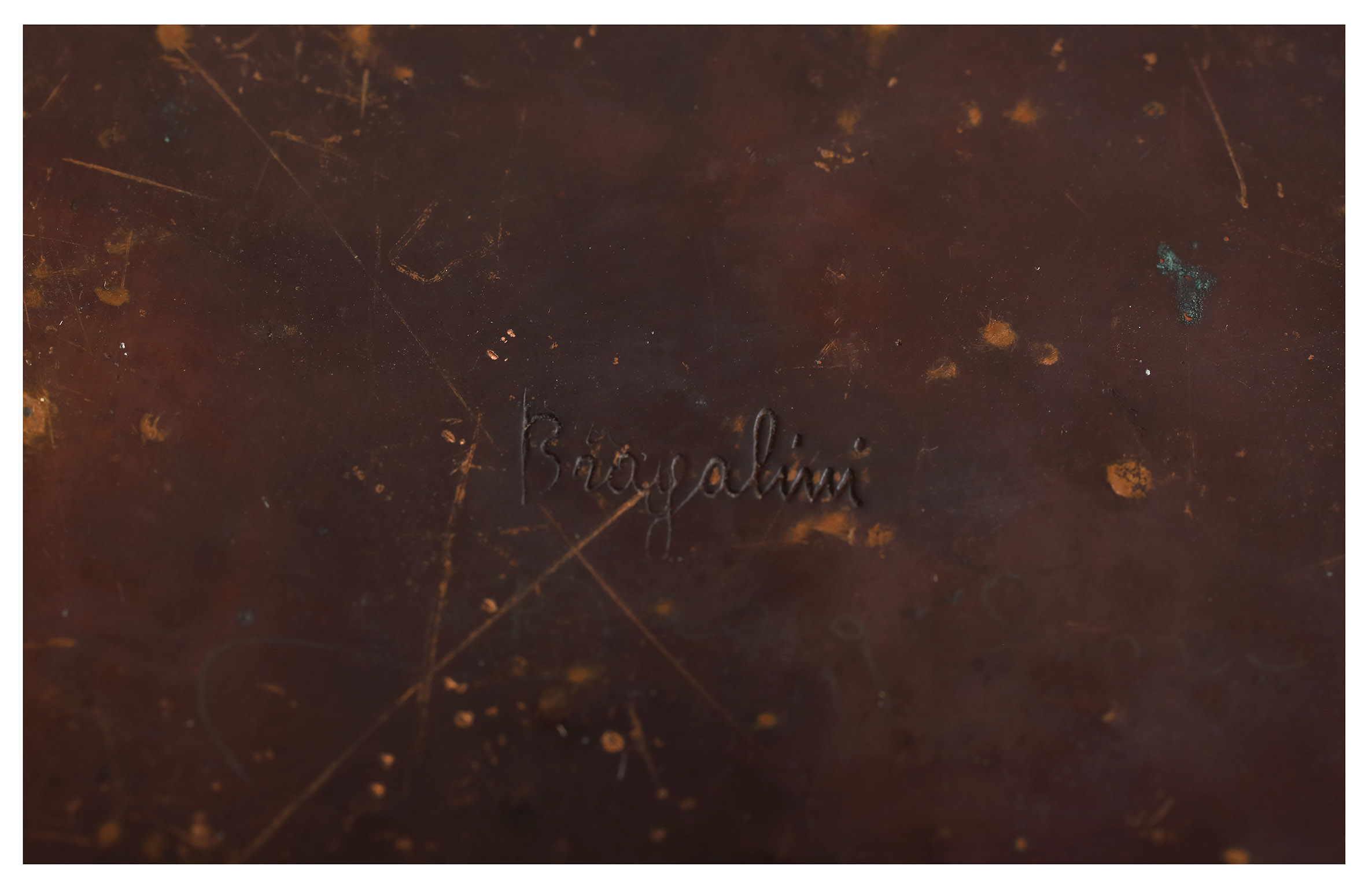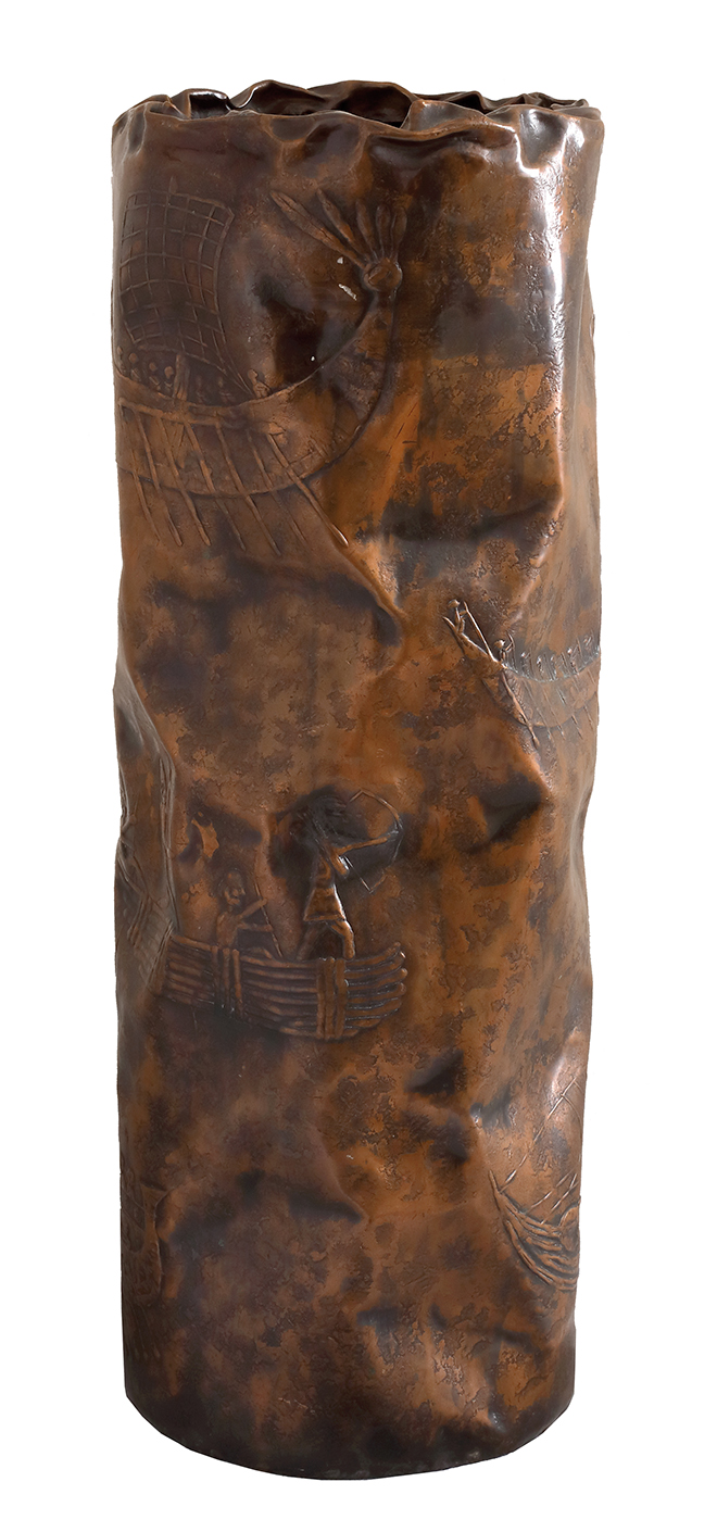 ANGELO BRAGALINI Vaso con figure stilizzate sbalzate Rame, h. 56,5 cm Firma incisa sotto la base: Bragalini