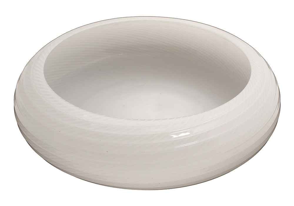 ARCHIMEDE SEGUSO - MURANO Centrotavola in vetro bianco con decoro a righe, Anni ‘50 Vetro, 6,5 x 23 cm Firma e luogo all’acido sotto la base: Archimede Seguso, Milano (Italy)