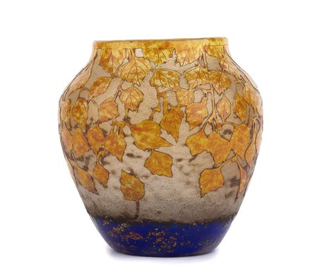 DAUM - NANCY Vaso con decorazione a tralcio di foglie Vetro, h. 15 cm Firma in basso: Daum Nancy