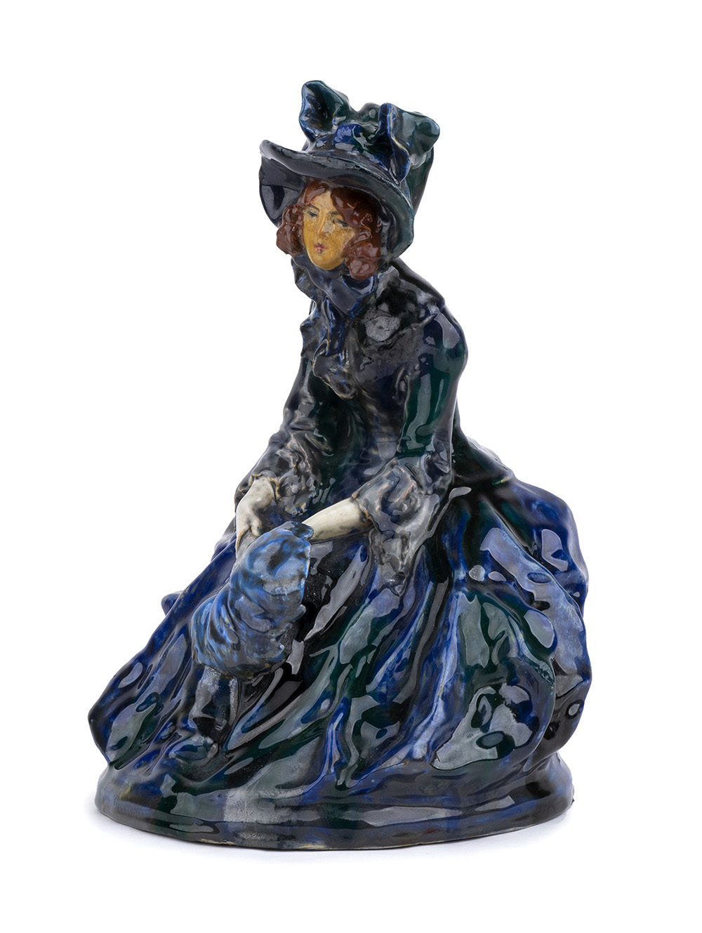 DOMENICO MASTROIANNI Statuina di nobildonna, Anni ‘30 Scultura in ceramica dipinta, h. 29 cm Firma e luogo al retro: D. Mastroianni Roma