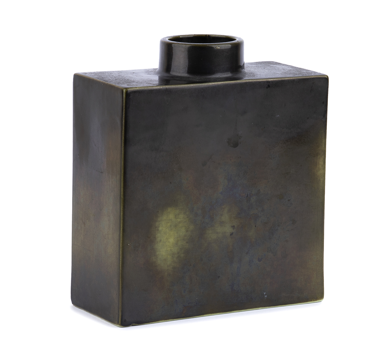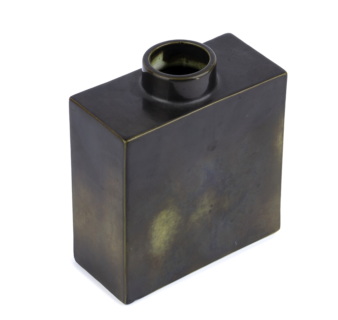 GIO PONTI - RICHARD GINORI, SAN CRISTOFORO Vaso in ceramica smaltata nei toni del verde, Anni '50 Ceramica smaltata, 17 x 14,5 x 7 cm Timbro sotto la base: Richard Ginori S. Cristoforo Milano, Made in Italy