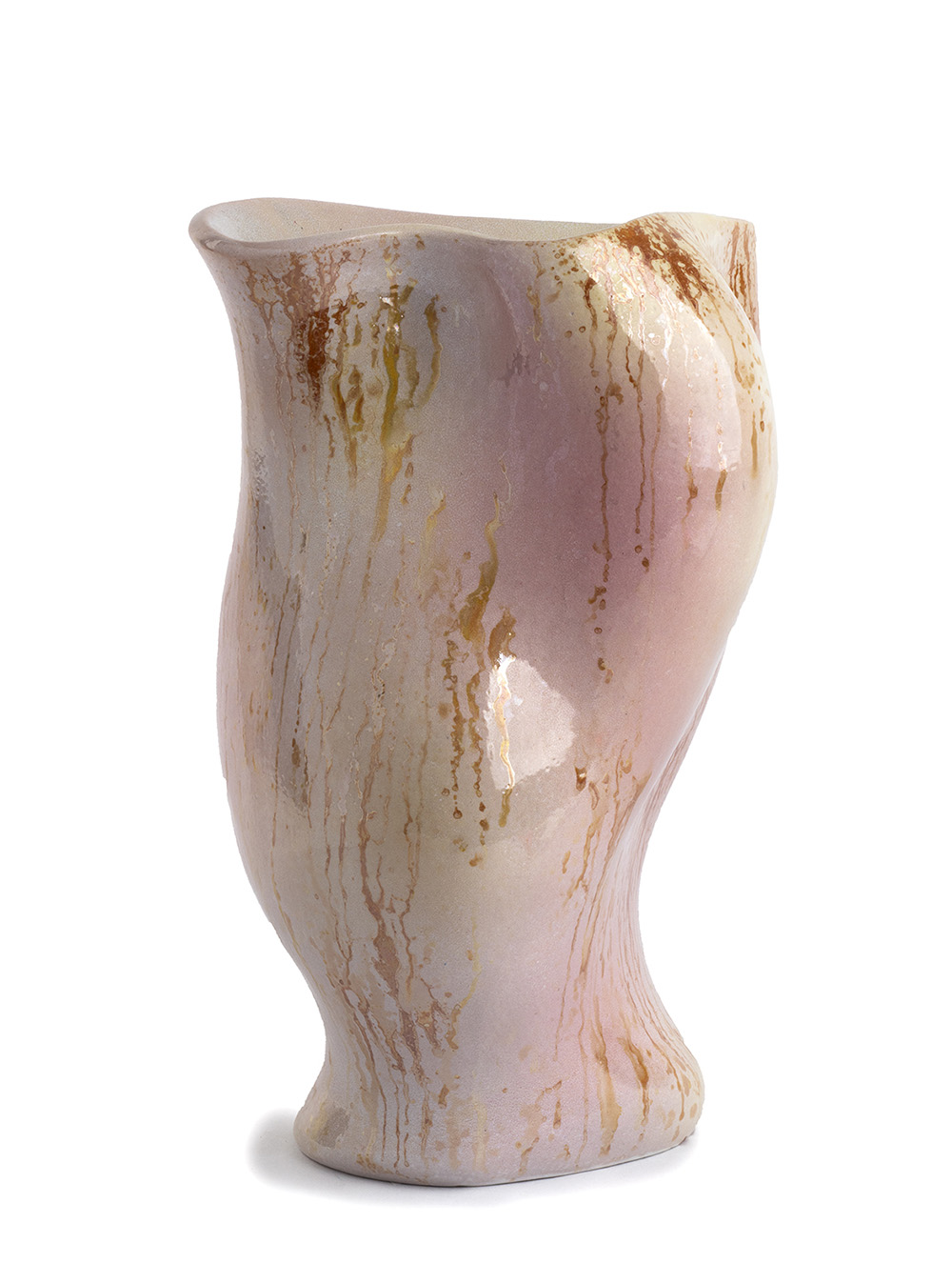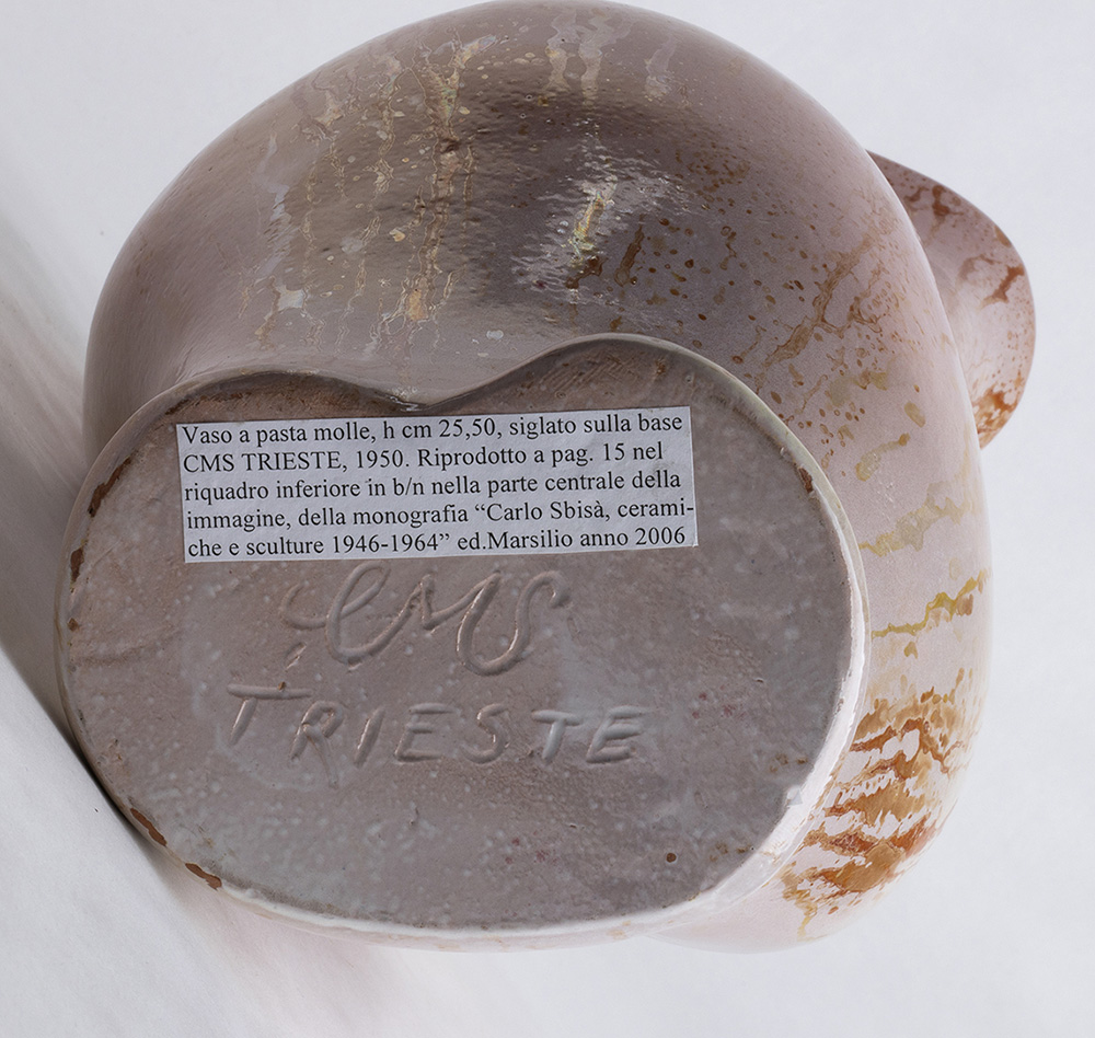 CARLO SBISÀ Vaso rosa iridescente a pasta molle, 1950 Ceramica dipinta, h. 25,5 cm Firma e luogo sotto la base: CMS Trieste PUBBLICAZIONI N. Stringa, “Carlo Sbisà. Ceramiche e sculture 1946-1964”, Ed. Marsilio, 2006, p. 15