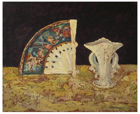 PASQUAROSA MARCELLI BERTOLETTI Ventaglio e vaso con fondo nero, 1921 Olio su...