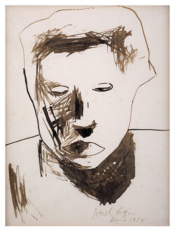 PERICLE FAZZINI Ritratto di uomo, 1934 China acquarellata su carta, 26 x 20 cm circa Firma, luogo e data in basso a destra: Pericle Fazzini Roma 1934