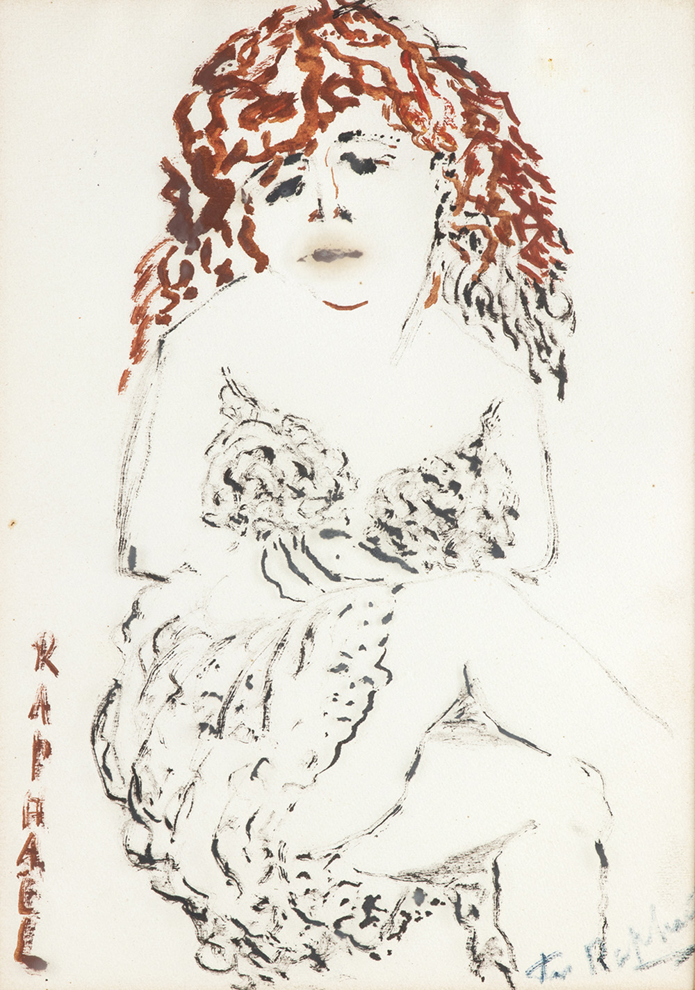 ANTONIETTA RAPHAËL Ritratto femminile Inchiostri su carta, 36 x 25 cm Firma in basso a destra: A. Raphaël Firma al centro a sinistra: Raphaël