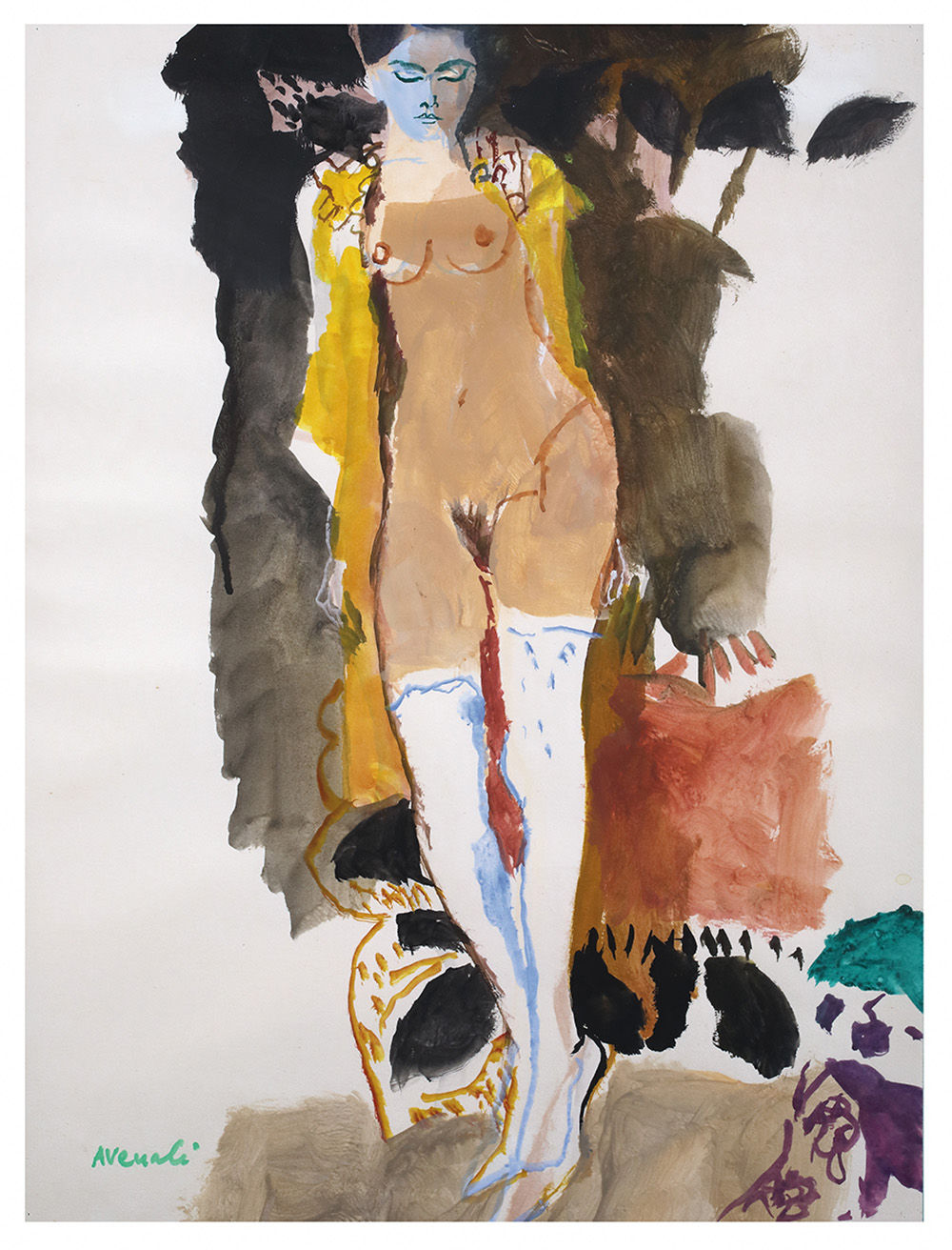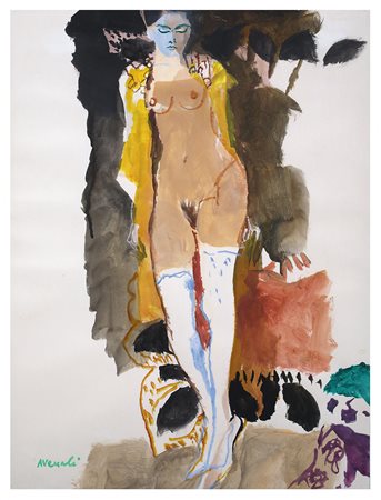 MARCELLO AVENALI Donna nuda con le calze autoreggenti Tecnica mista su carta,...