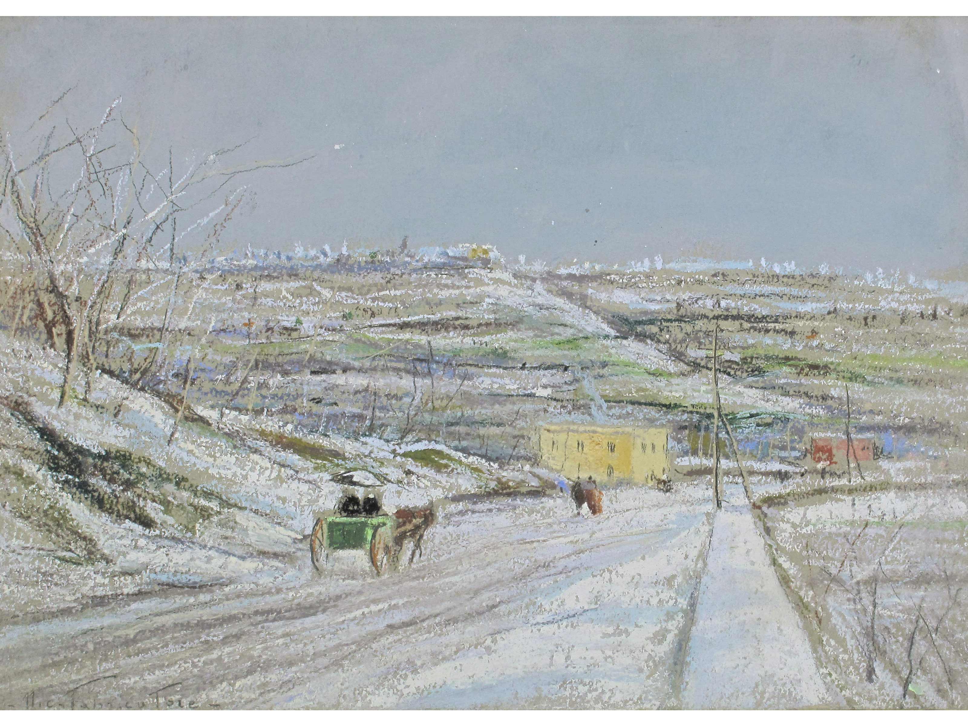 Nicola Fabbricatore (Napoli 1888-Roma 1962) Nevicata Pastello su cartoncino Firmato Misure 24.5x35 cm