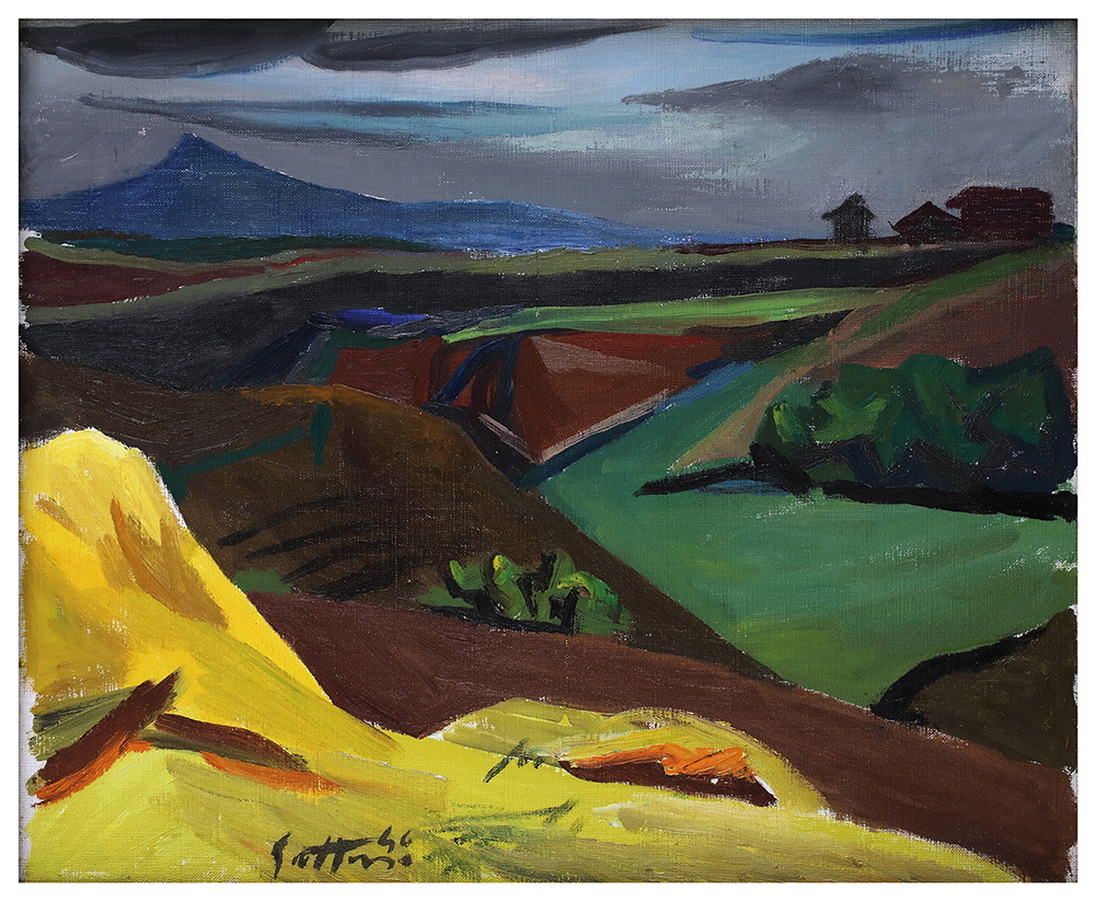RENATO GUTTUSO Le siepi gialle, 1946 Olio su tela, 37,5 x 45,5 cm Firma e...