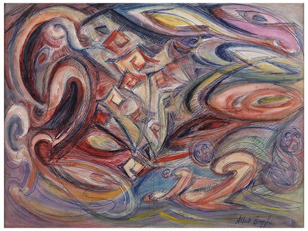 ALBERTO BRAGAGLIA Modulazioni, 1920 Acquarello e inchiostro blu su carta, 31 x 41 cm Firma in basso a destra: Alberto Bragaglia
