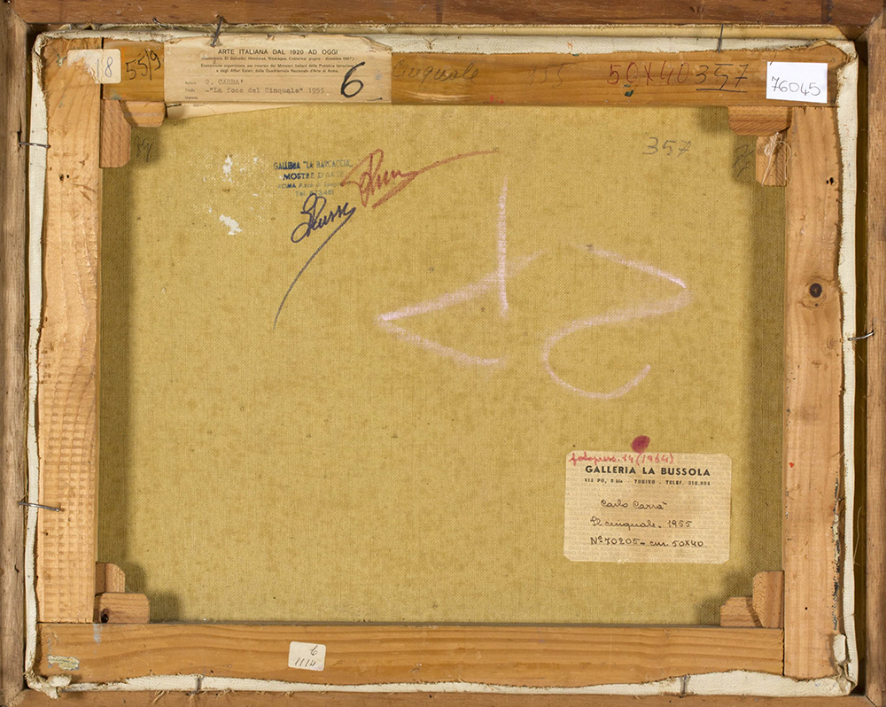 CARLO CARRÀ Cinquale, 1955 Olio su tela, 40 x 50 cm Firma e data in basso a sinistra: C. Carrà 955 Timbro al retro della Galleria La Barcaccia, Mostre d’arte di Roma Etichette al retro della Galleria La Bussola, Torino e dell’Esposizione “Arte Italiana dal 1920 ad oggi”, giugno - dicembre 1967 PUBBLICAZIONI Massimo Carrà, “Carrà. Tutta l’opera pittorica”, volume III, 1951-1966, Edizioni dell’Annunciata in coedizione con Edizioni della Conchiglia, n. 8/55, p. 201