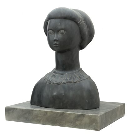 MARIO PORCÙ Busto di fanciulla Marmo grigio, 35 x 28 x 21 cm circa (40 x 37,5...