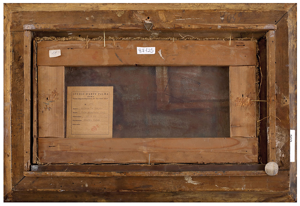 AMLETO DE SANTIS Nudo sdraiato, 1945 Olio su tela, 24 x 42 cm Timbro al retro di Europa, Rio de Janeiro Etichetta al retro dello Studio d’Arte Palma, Roma
