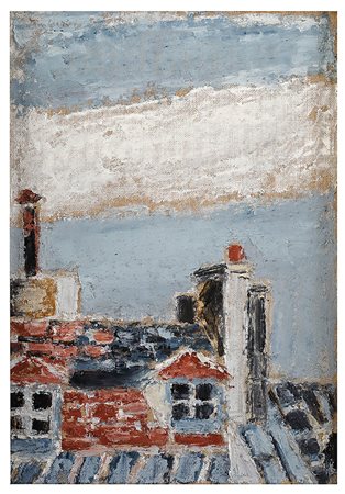 ORFEO TAMBURI Parigi - Gli abbaini, 1965-66 Tempera su tela, 30 x 21 cm...