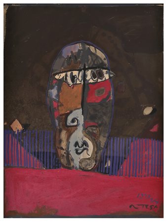 JOSÉ ORTEGA Tête paysan, 1971 Tecnica mista su carta applicata su tela, 67 x...