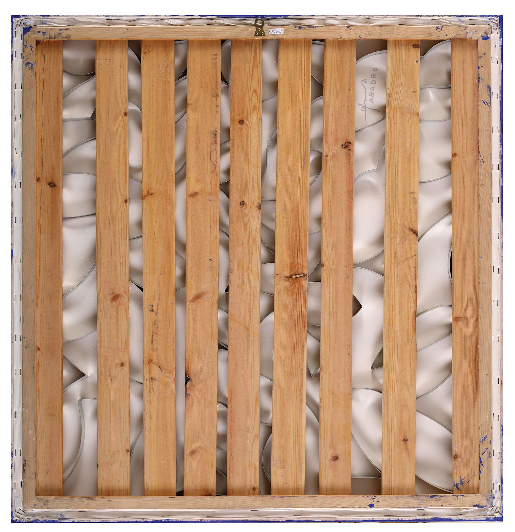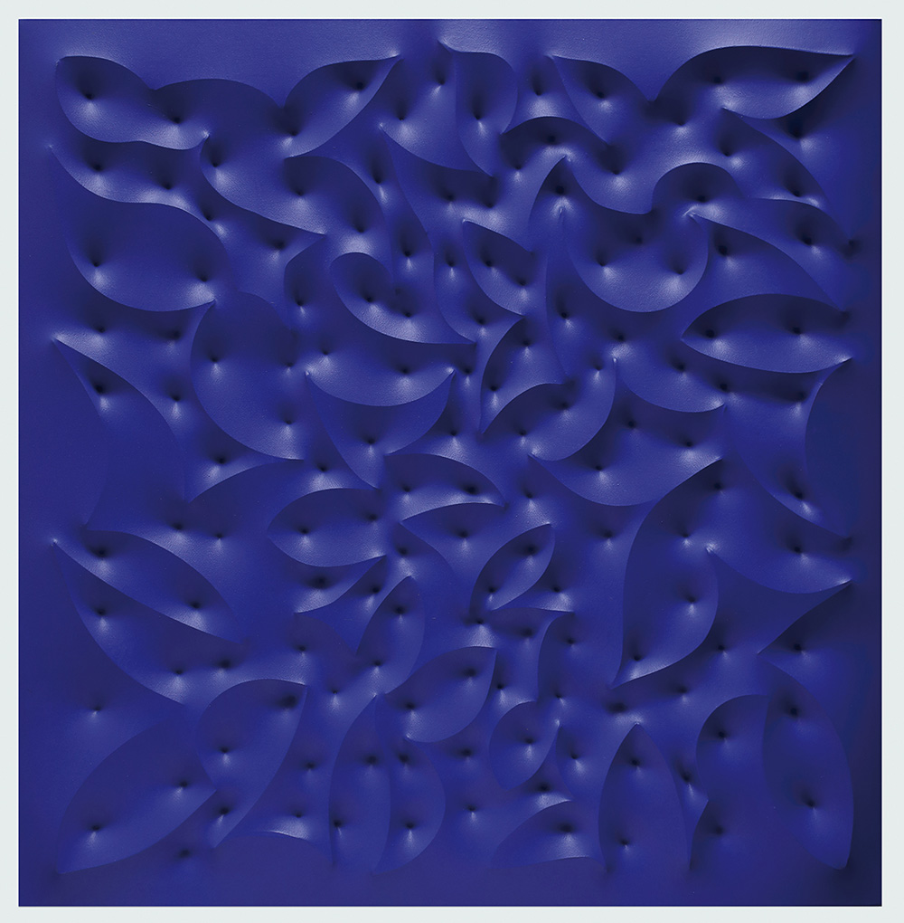 GIUSEPPE AMADIO Abadro Tecnica mista su tela estroflessa monocromo blu, 100 x 100 cm Firma e titolo al retro: Amadio, Abadro