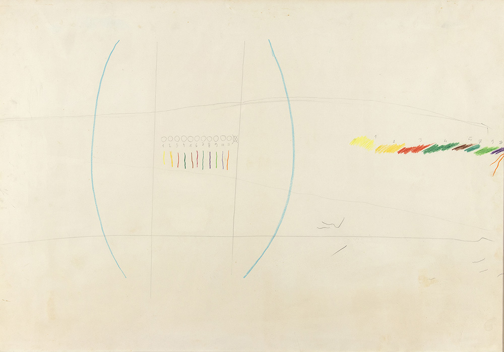GASTONE NOVELLI Senza titolo, 1962 - 1963 Pastello e matita su carta, 68 x 98 cm Autentica al retro di Achille Perilli, 16 dicembre 1983, Roma Autentica su foto di Mara Coccia, Roma