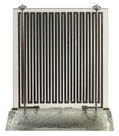 JEAN-RENÉ COULON - SAINT GOBAIN Radiatore in vetro di forma squadrata con base decorata in rilievo, Anni ‘30 Vetro e metallo, 49 x 42 cm