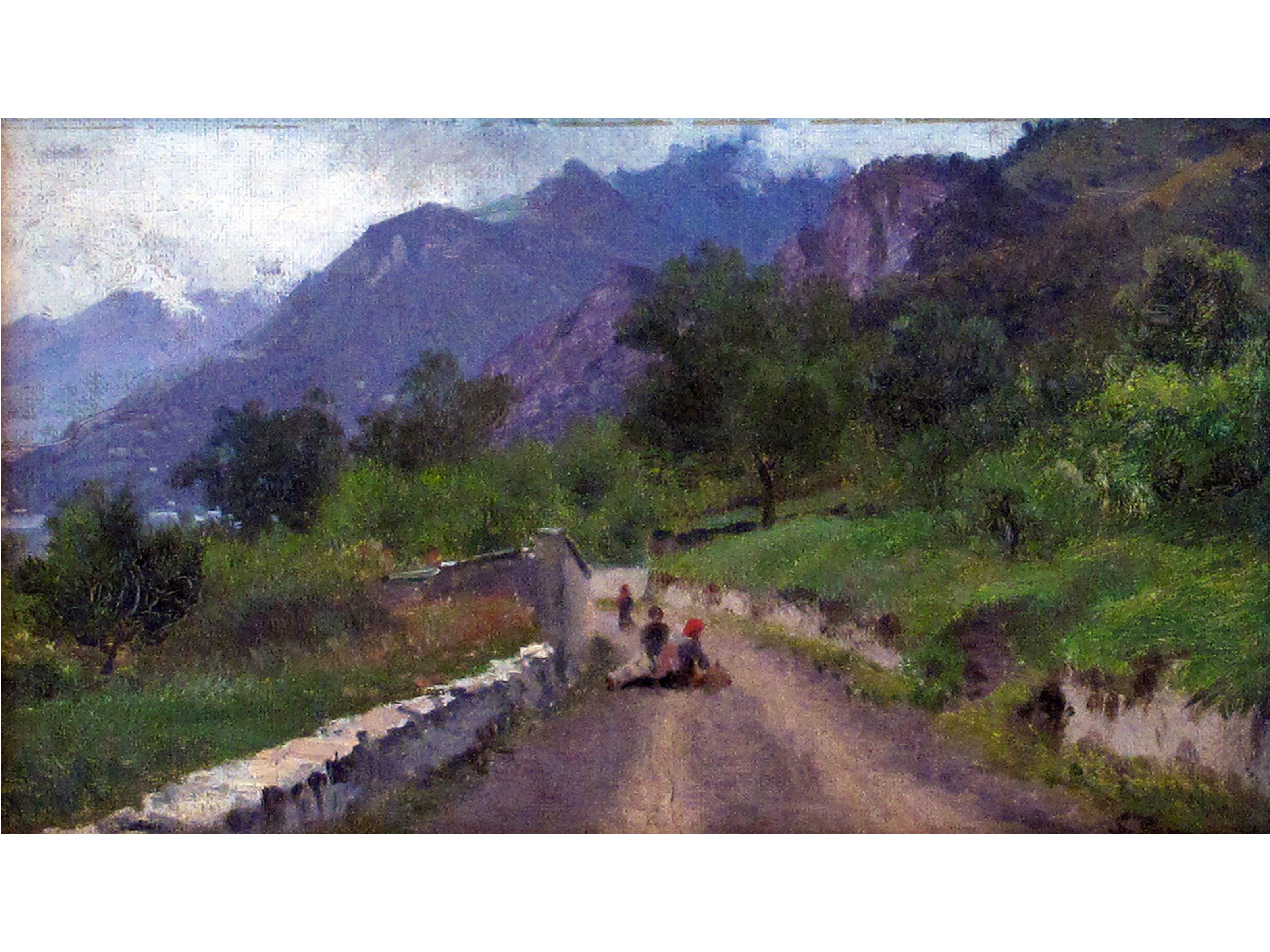 Lotto 42 | Silvio Poma (Trescore Balneario 1840 - Turate 1932) Per la strada Olio su...