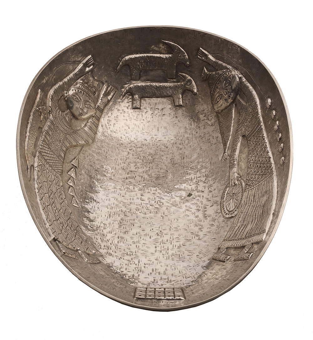 CECCHERINI - FINZI Centrotavola con figurazioni lavorate a sbalzo, Anni ‘50...