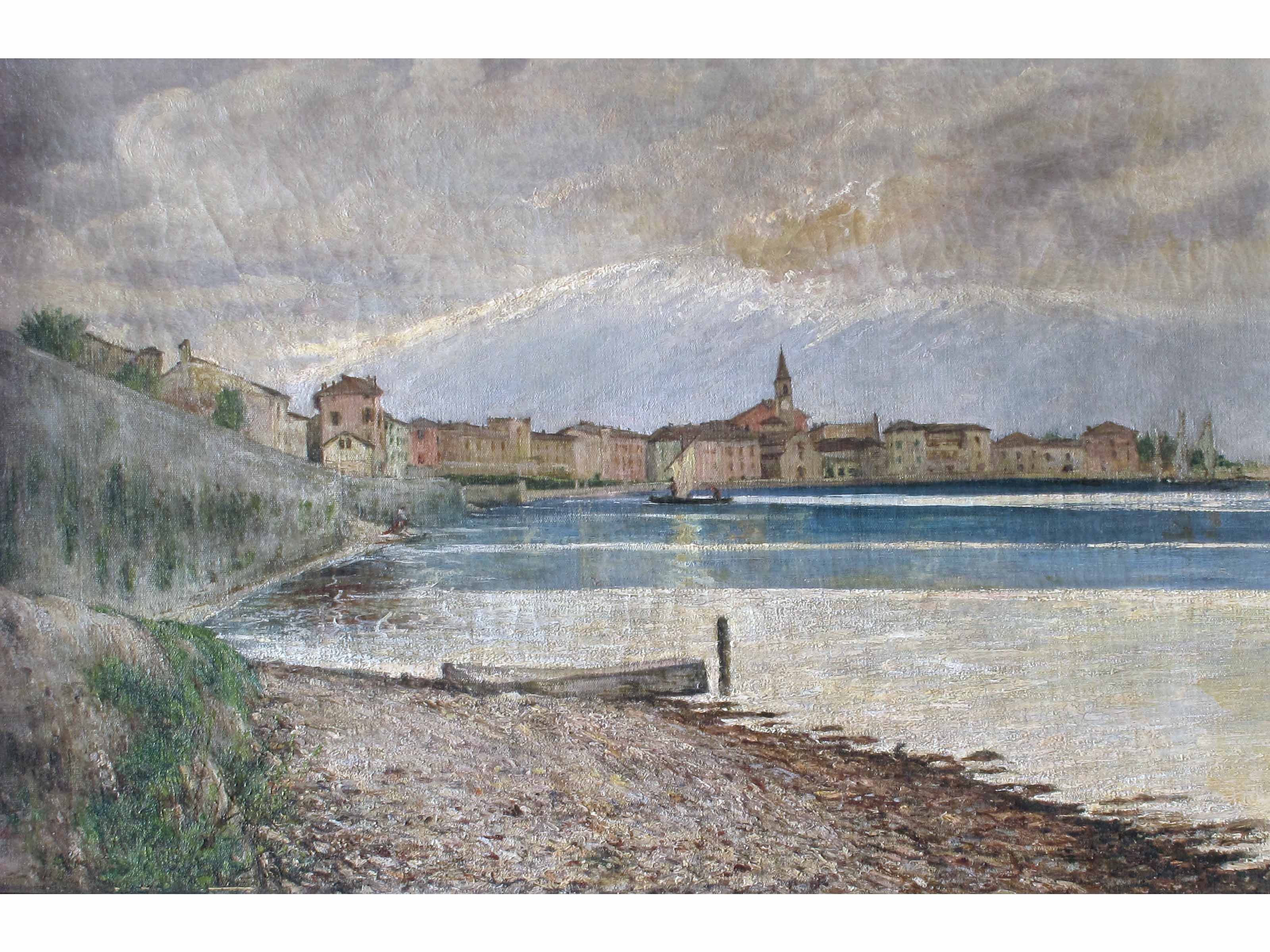 Giobatta Barbieri (Salò 1858-1926) Lungo lago di Maderno Olio su tela Misure 42x65 cm