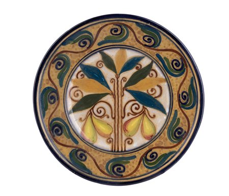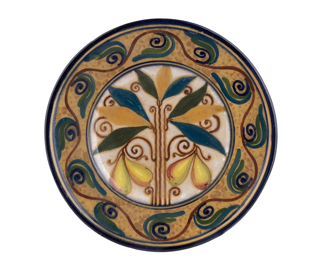 PIETRO HAMED VENANZI - FRATELLI TIDEI, GROTTAFERRATA Piatto con pere e motivi vegetali Ceramica dipinta, d. 18 cm Firma sotto la base: F.lli Tidei Grottaferrata, Hamed