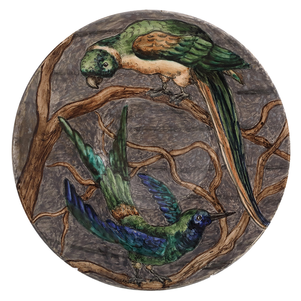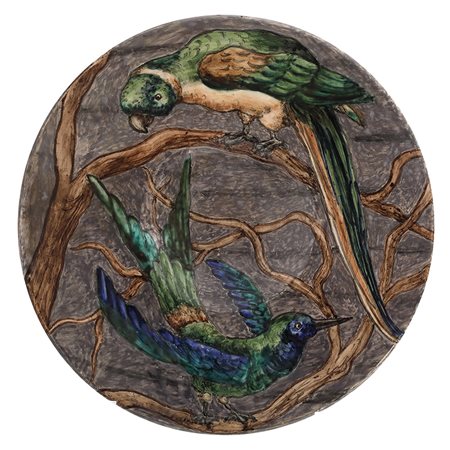 OLGA MODIGLIANI Piatto con pappagallo e uccellino Ceramica policroma, 19,9 x...