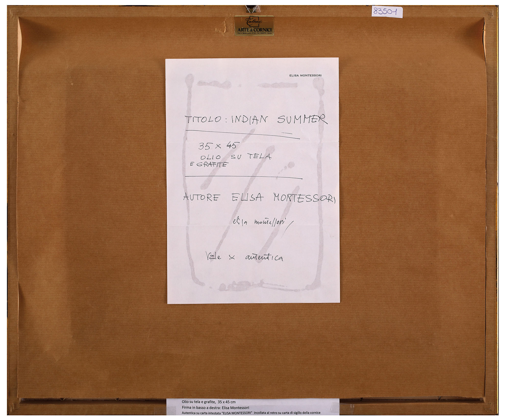 ELISA MONTESSORI Indian summer Olio e grafite su tela, 35 x 45 cm Firma in basso a destra: Elisa Montessori Autentica al retro dell’Artista