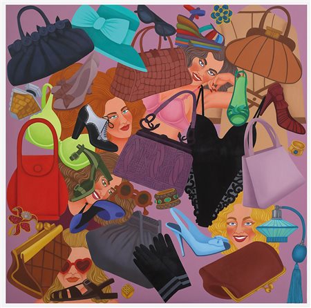 GIOVANNA PICCIAU Sindrome compulsiva da outlet, 2009 Olio su tela, 100 x 100 cm Etichetta al retro dello Studio d’Arte Campaiola di Roma Dedica e firma al retro: “Dedicato a Elisa Anna”, Giovanna Picciau Data, firma, tecnica, misure e titolo al retro