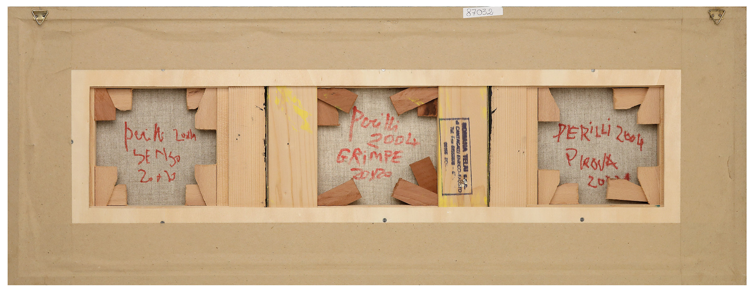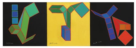 ACHILLE PERILLI Trittico geometrico, 2004Senso, Prova, Grimpe Acrilico su...