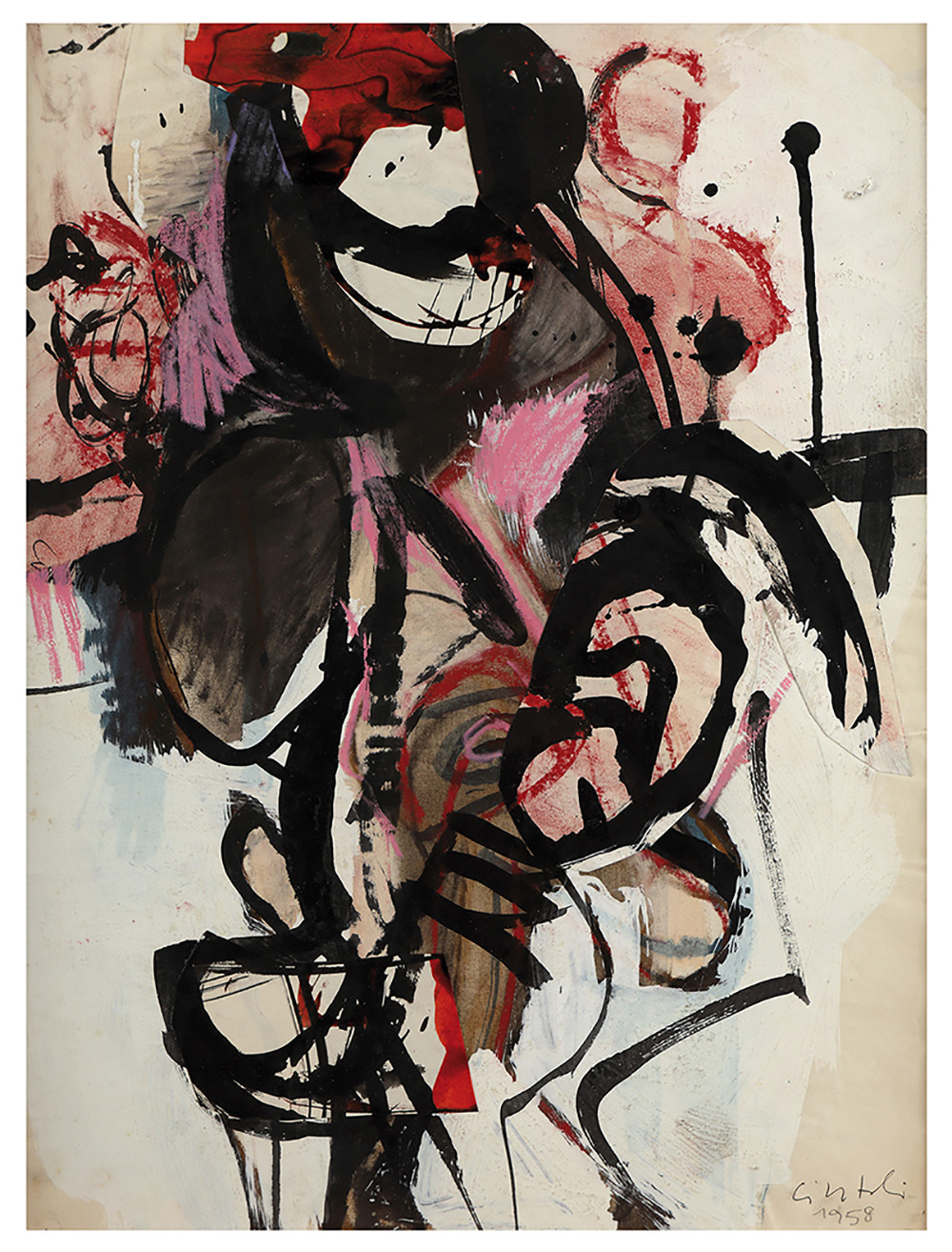 CLAUDIO CINTOLI Senza titolo, 1958 China, tempera e pastello su carta, 46 x...