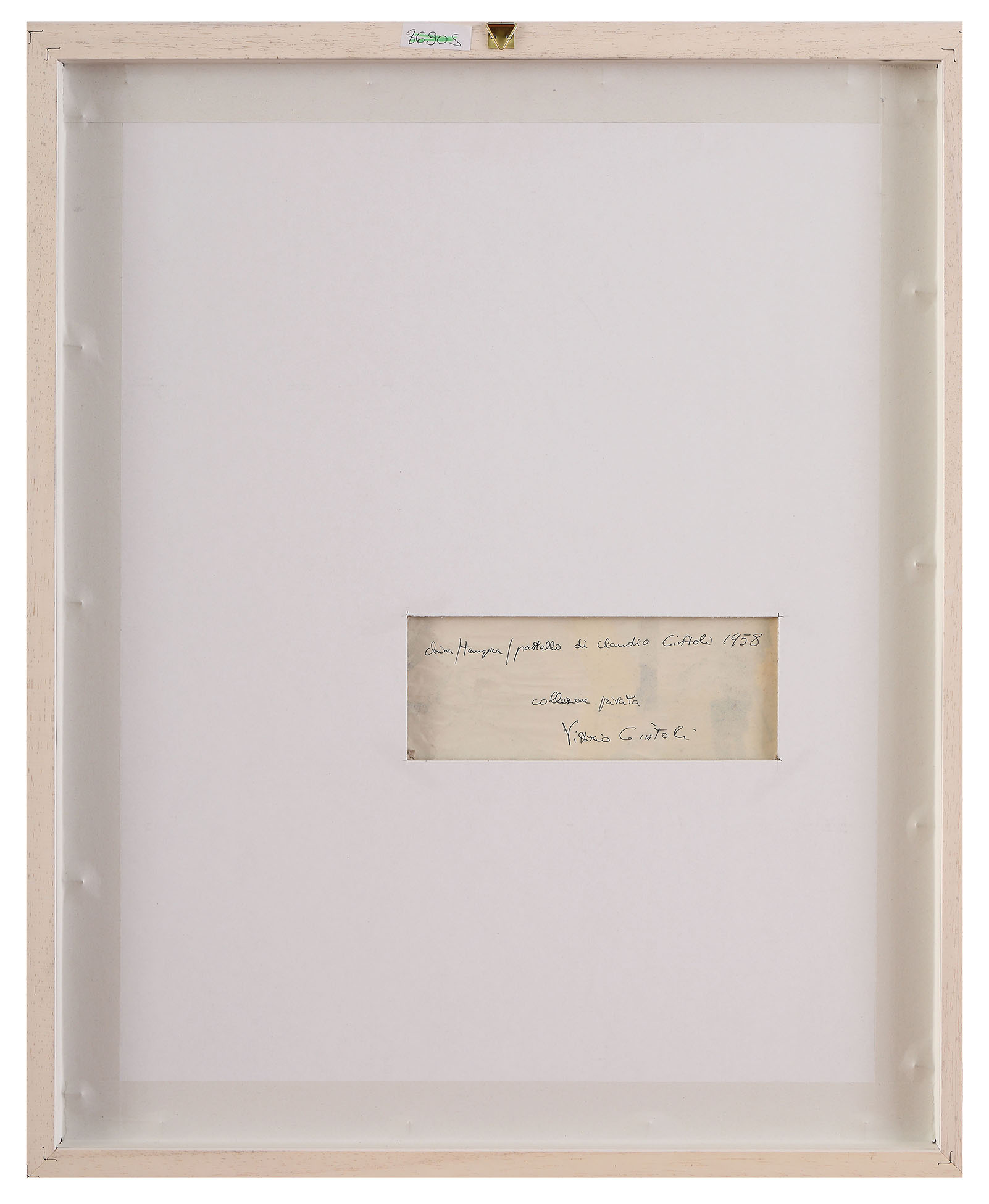 CLAUDIO CINTOLI Senza titolo, 1958 China, tempera e pastello su carta, 46 x 34 cm circa Firma e data in basso a destra: Cintoli 1958 Tecnica, firma e data al retro: China, tempera e pastello su carta, Claudio Cintoli, 1958 Dichiarazione di autenticità al retro di Vittorio Cintoli Autentica su foto dell’Archivio Pi.gallery, Ferrara, 2018 PROVENIENZA Collezione Vittorio Cintoli