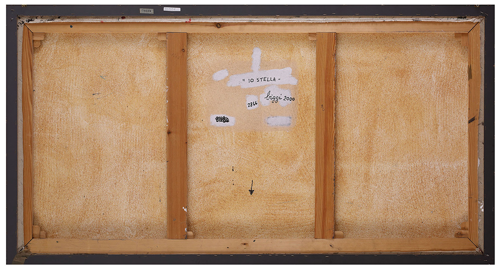 GASTONE BIGGI Io stella, 2000 Idropittura su tela, 100 x 200 cm Titolo, firma e data al retro: Io stella, Biggi 2000 Autentica su foto dell’Artista PUBBLICAZIONI A. C. Quintavalle, G. Bianchino (a cura di), “Gastone Biggi”, Skira, 2018, p. 33