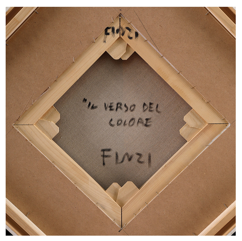 ENNIO FINZI Il verso del colore Olio su tela, 57 x 57 cm Firma in basso al centro: Finzi Titolo e firma al retro: Il verso del colore, Finzi Autentica su foto dell’Artista