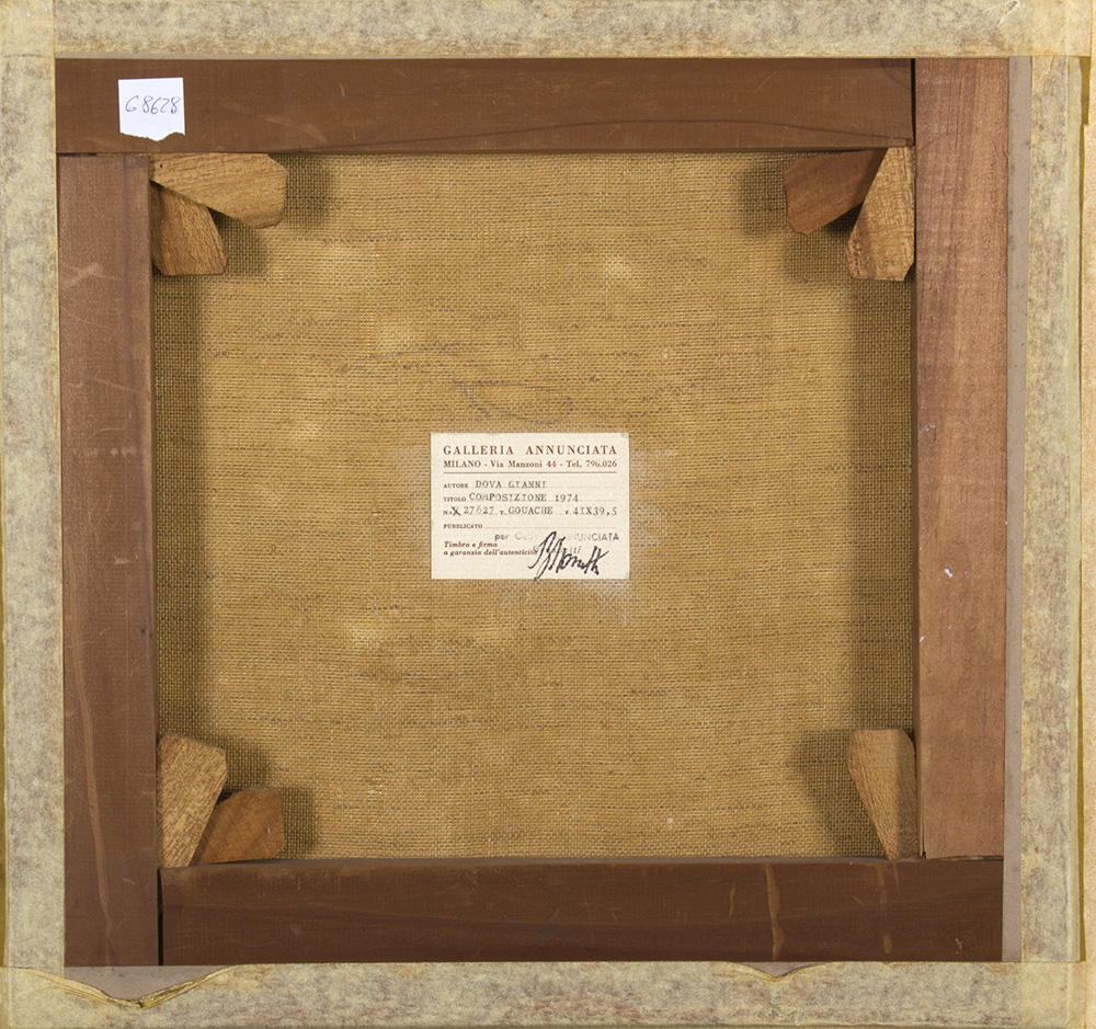 GIANNI DOVA Composizione, 1974 Tempera su carta intelata, 41 x 39,5 cm Firma in basso a destra: Dova Etichetta al retro della Galleria Annunciata, Milano Autentica su foto della Galleria Annunciata, Milano, 30 settembre 1975