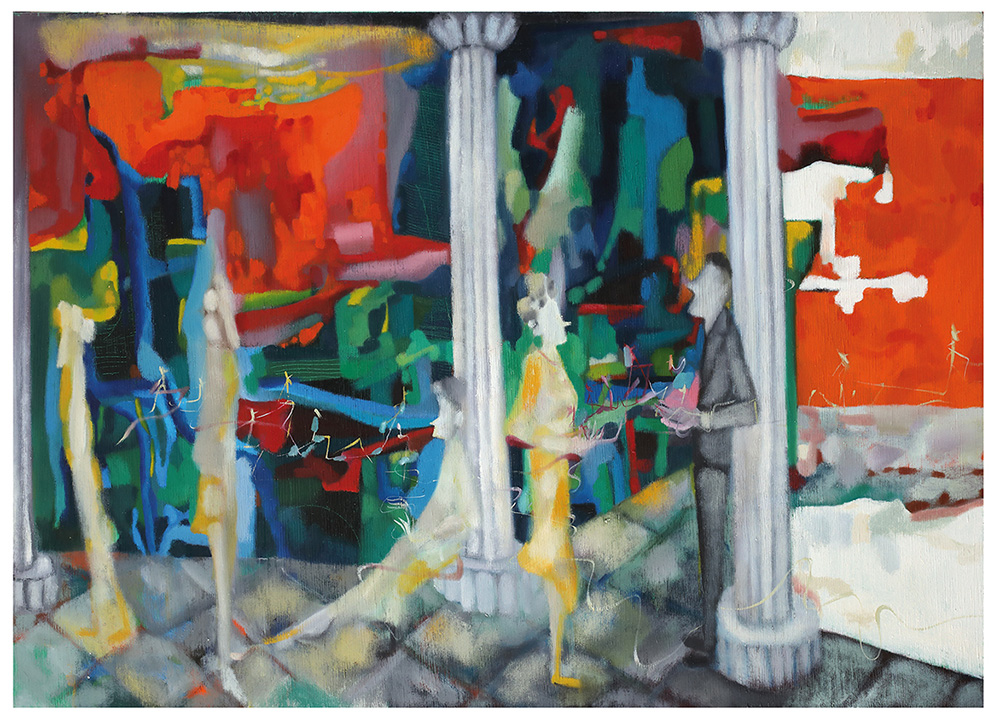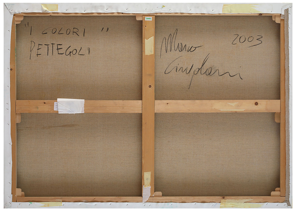 MARCO CINGOLANI Colori pettegoli, 2003 Olio su tela, 114,5 x 163 cm Titolo, firma e data al retro: I colori pettegoli, Marco Cingolani, 2003 Autentica su foto della Galleria Astuni, Fano