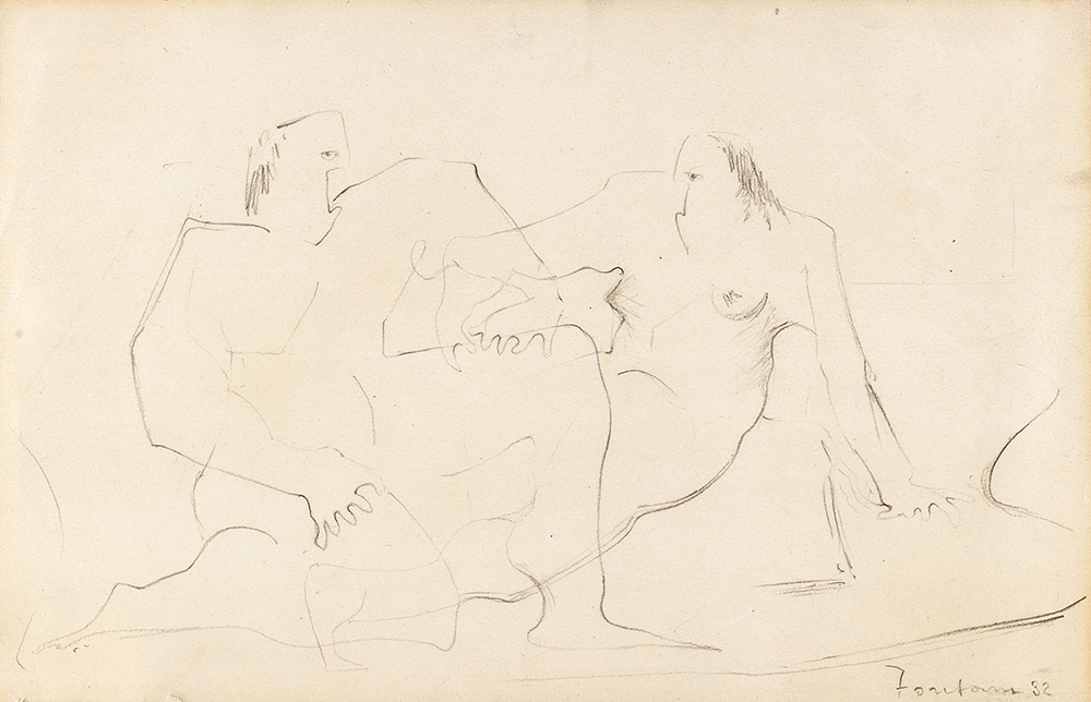 LUCIO FONTANA Figure, 1932 Matita su carta, 23 x 35,7 cm Firma e data in basso a destra: Fontana 32 Autentica su foto della Fondazione Lucio Fontana, Milano