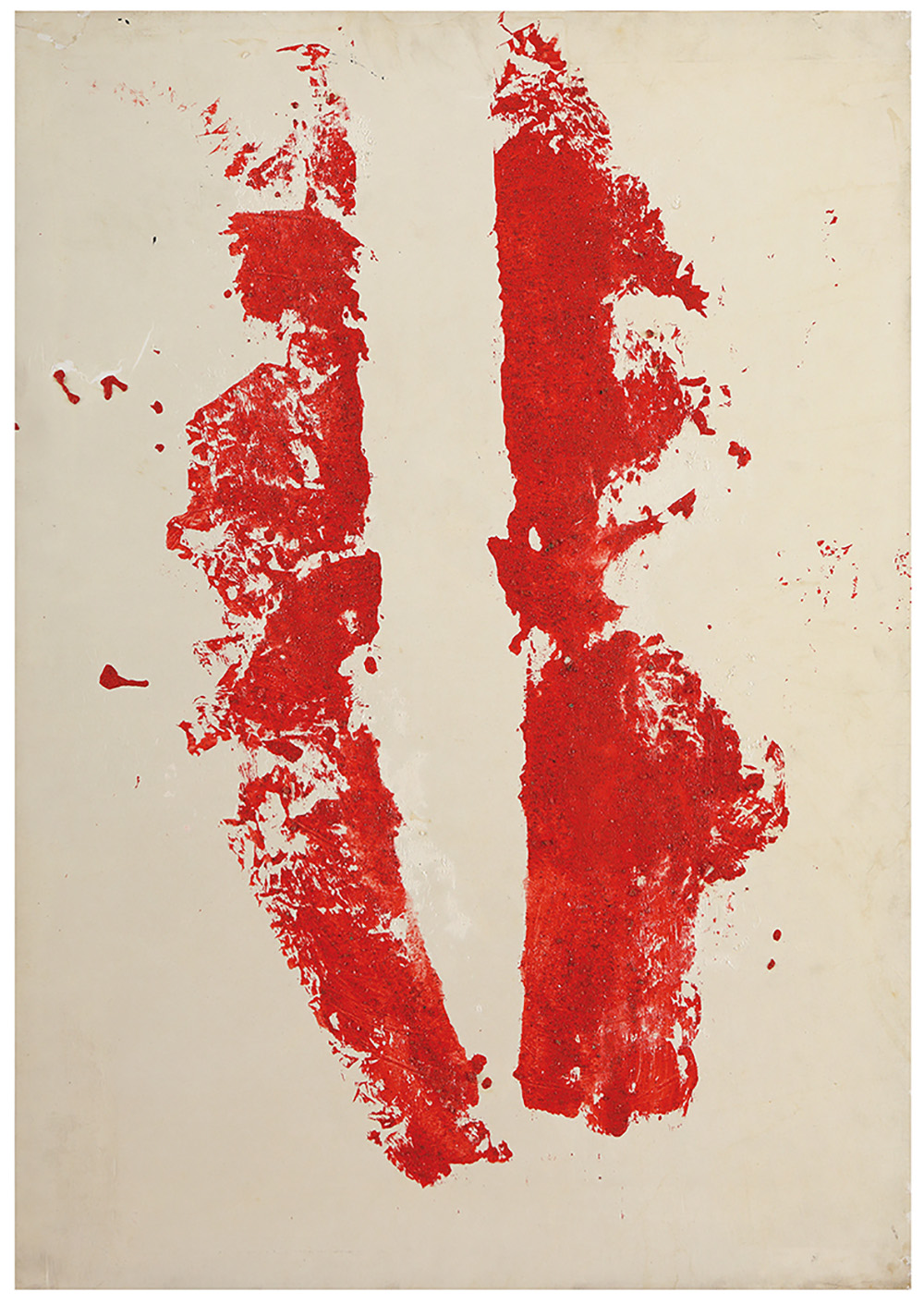 TOTI SCIALOJA Impronta, 1958 Tecnica mista su carta applicata su tela, 104 x 75 cm Firma e data al retro: Scialoja 1958 Autentica su foto della Fondazione Toti Scialoja, Roma, 2008