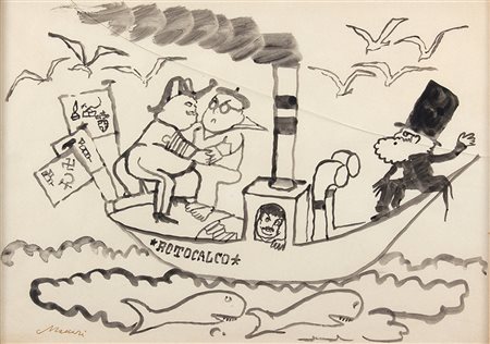 MINO MACCARI Rotocalco, Anni ‘50 Acquerello su carta, 24,9 x 35,2 cm Firma in...