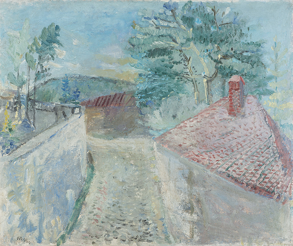 Angelo Del Bon (Milano 1898 - Desio 1952)"Vietta, muretto e alberi" olio su...
