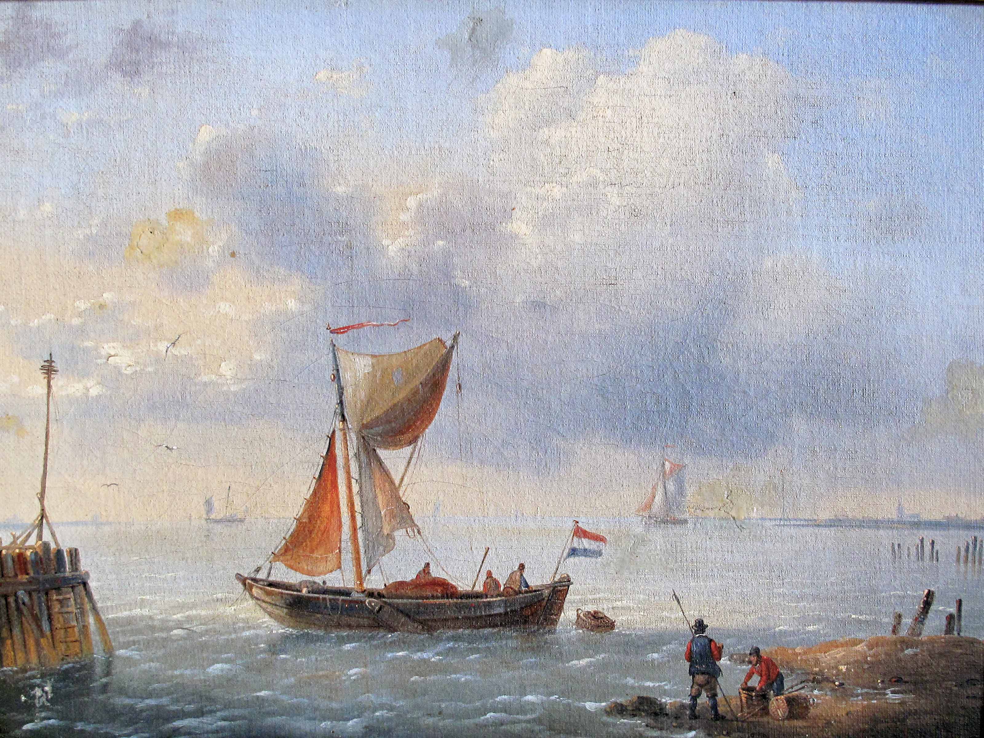 Firma illeggibile (XIX secolo) Marina Olio su tela applicata su tavoletta...