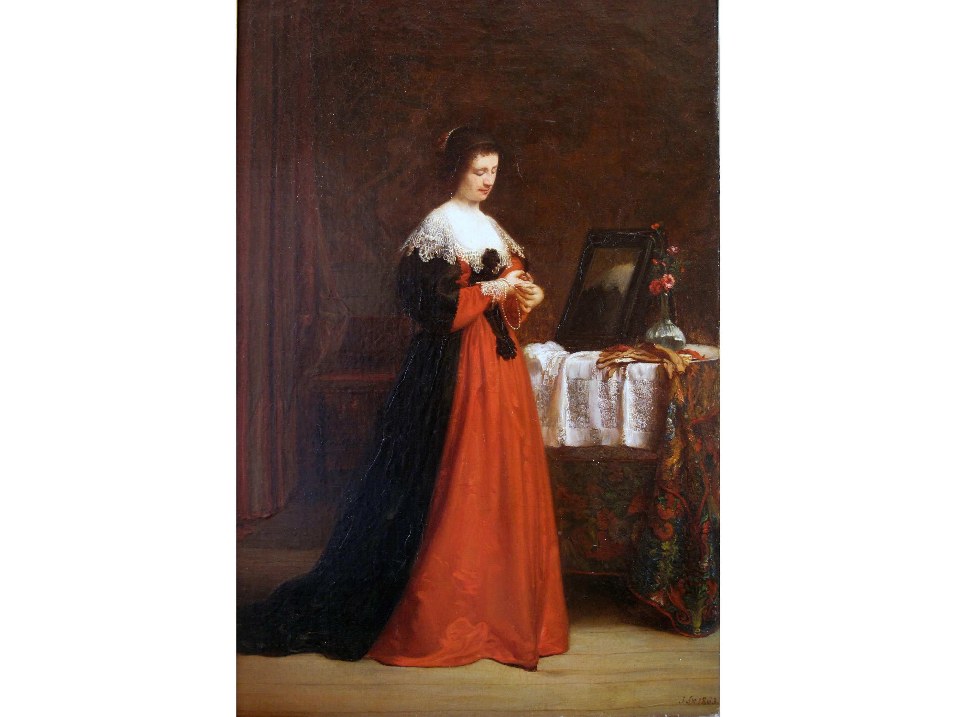 Firma non identificata La toilette della sera Olio su tela Siglato e datato 1863 Misure 37.5x25 cm