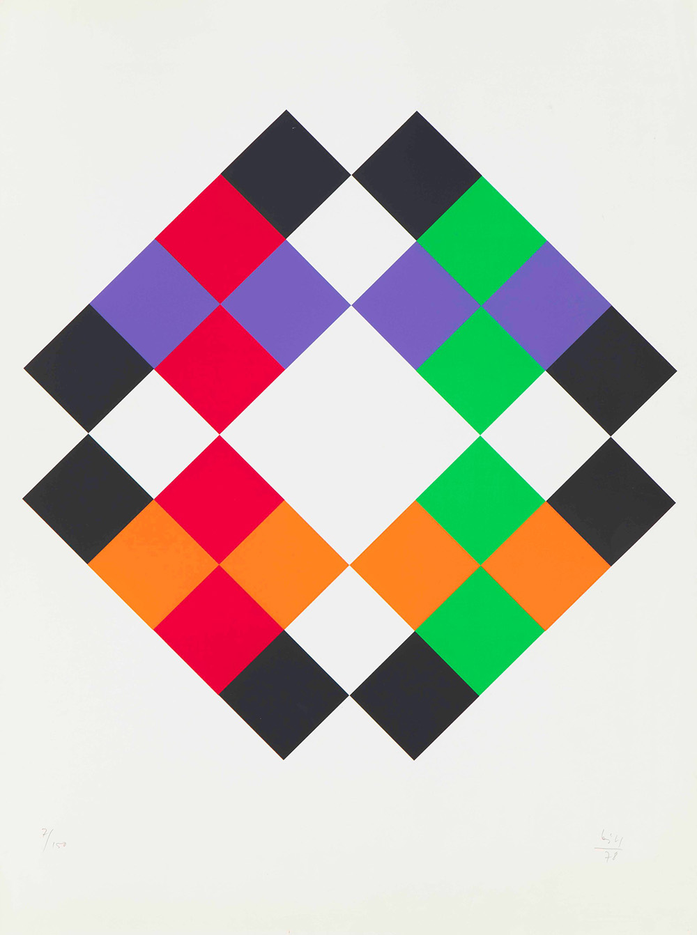 Max Bill (1908-1994), Senza titolo, 1978 serigrafia a colori su carta, cm 80x60 numerata, datata e firmata a matita in basso a destra es. 7/150 L’opera si presenta in buono stato conservativo