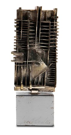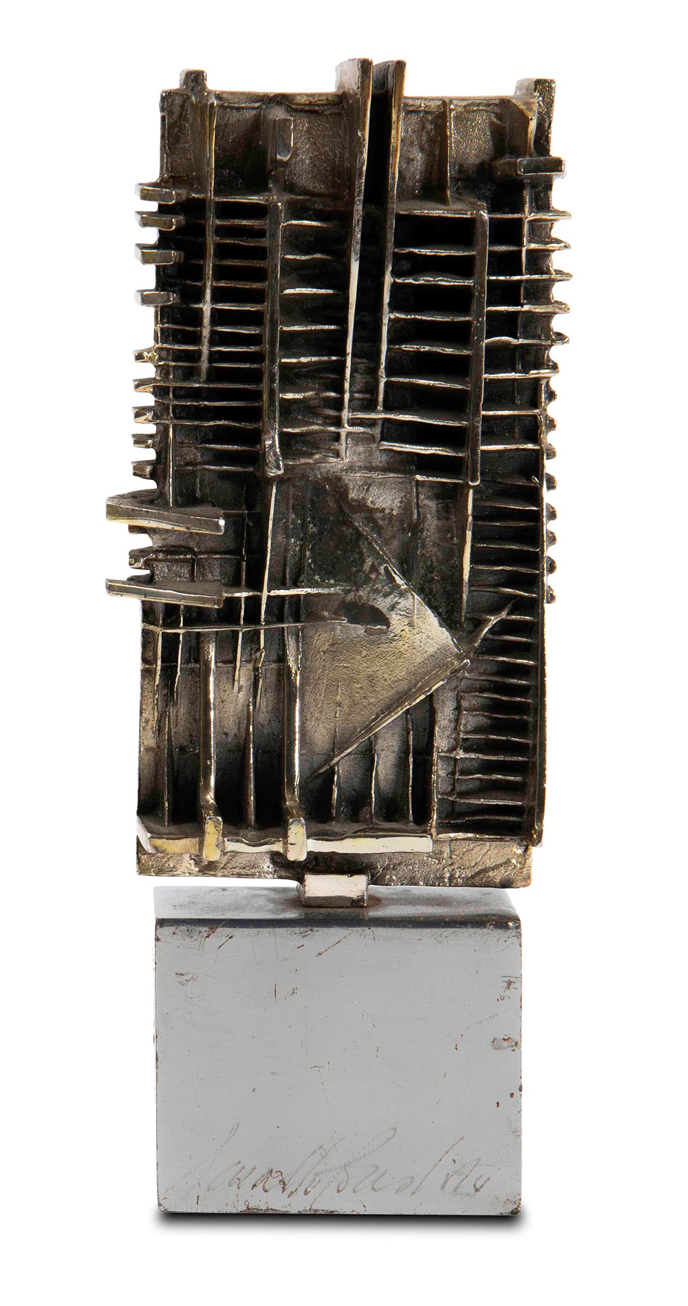 Arnaldo Pomodoro (1926), Senza Titolo bronzo dorato, cm 17,2 firmato sulla base marchiato sulla base Gruppo Finsider es. 289/300
