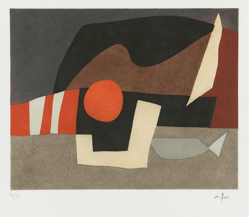 Afro Basaldella (1912-1976), L’invitation au voyage, 1975 ca Lotto di due litografie acquaforte ed acquatinta su piastra di rame su carta Fabriano Rosaspina, cm 28x33 es. 36/80 Edizioni e Stamperia 2RC, Roma buono stato entrambe