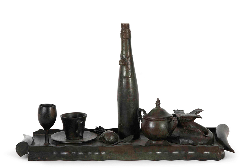 Daniel Spoerri (1930), Senza titolo bronzo, cm 21x55x36 firmato es. 11/33