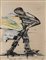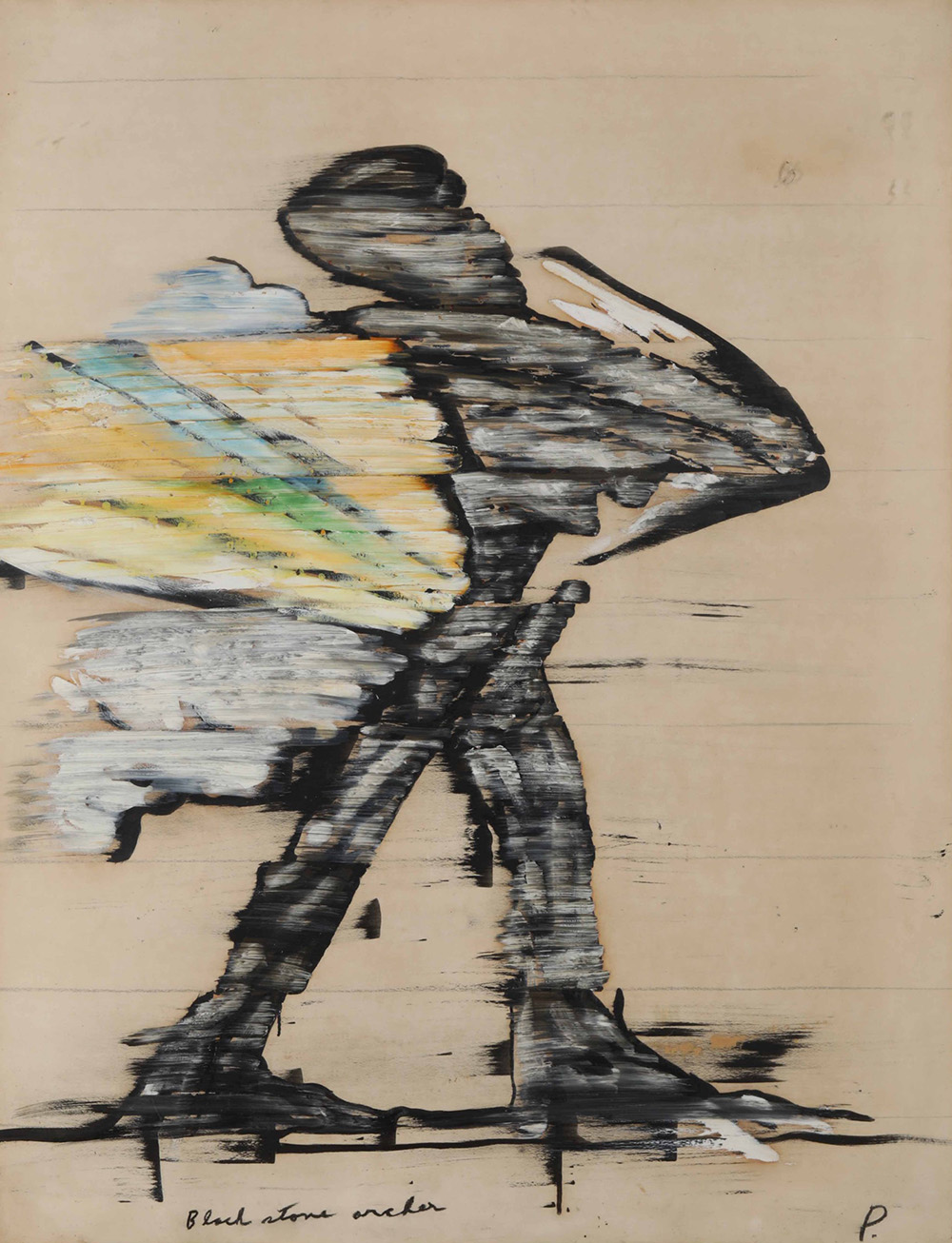 Irving Petlin (1934), Black stone archer, 1966 olio su cartoncino applicato...