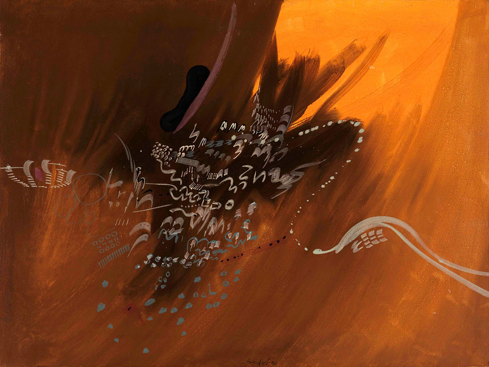 Sergio Dangelo (1932), Composizione, 1961 olio su tela, cm 59,5x79 firmato in basso al centro firmato sul telaio Etichetta al retro della Galleria De Vuyst, Lokeren Provenienza: Galleria De Vuyst, Lokeren Collezione privata, Pistoia L’opera si presenta in buono stato conservativo