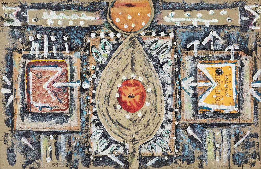 Phillip Martin (1927-2014), Les Gardiens, 1959 tecnica mista su carta intelata, cm 22x35 firmato e intitolato in basso a destra firmato, intitolato e datato al fronte e al retro L’opera si presenta in buono stato conservativo